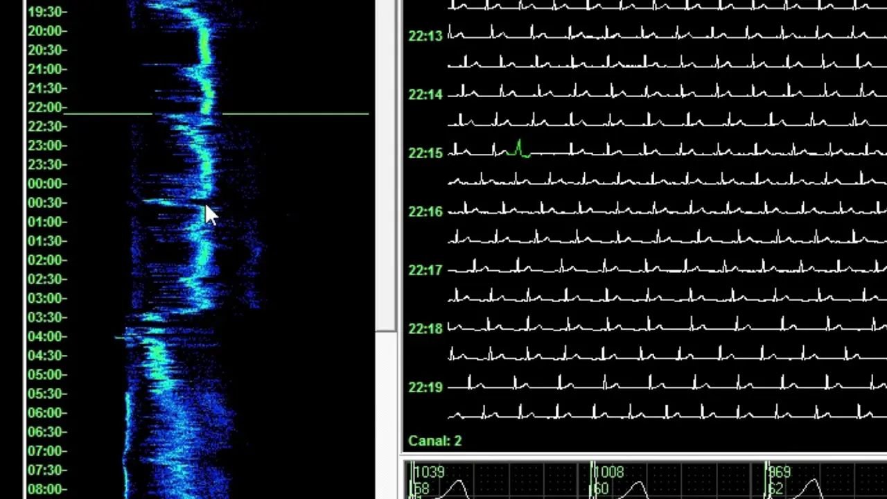 Histogramas 2D exclusivos y tiras de scan de hasta 60 minutos con eventos resaltados para una interpretación clara y rápida.