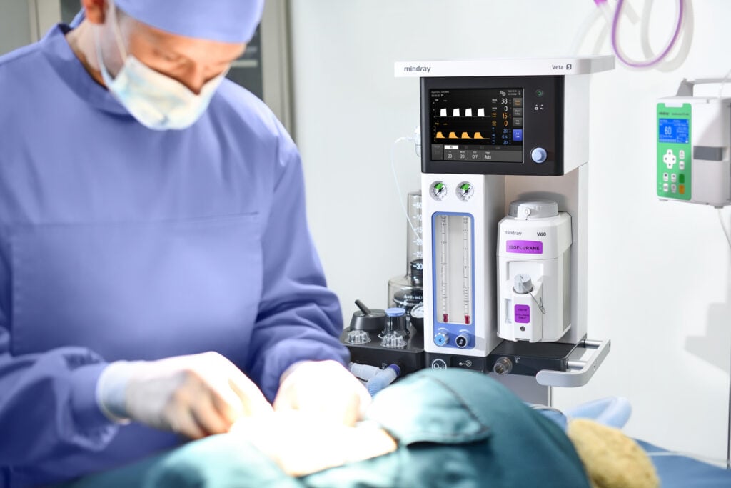 ¿Busca Anestesia Segura y Precisa para Todo el Espectro de Pacientes Veterinarios? La anestesia veterinaria requiere una máquina que se adapte con precisión desde un pequeño felino hasta un gran equino. La Mindray Veta 5 lo logra con un Volumen Tidal mínimo de 5 ml, permitiendo una dosificación exacta desde 500 gramos hasta 150 kg. Su ventilador electrónico de turbina elimina la necesidad de gas propulsor externo, ofreciendo un control de ventilación superior y reduciendo el riesgo de fugas.