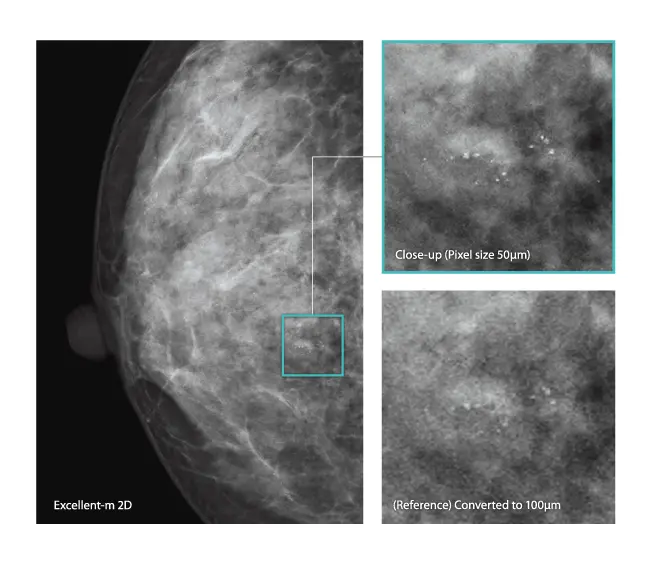 El Poder de la Imagen Tridimensional (DBT) y el Píxel más Fino del Mercado. El AMULET Innovality es la herramienta fundamental para el diagnóstico mamario avanzado. Su detector de conversión directa (a-Se) con píxeles hexagonales de 50 µm ofrece una resolución que maximiza la Eficiencia Cuántica de Detección (DQE) y, combinado con la Tomosíntesis, proporciona una claridad sin precedentes, incluso en tejidos densos.