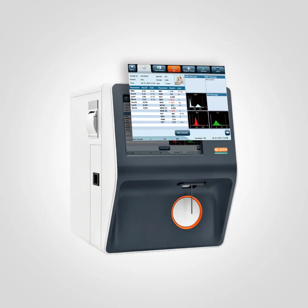 Diagnóstico completo con 23 parámetros, diferencial de 5 partes y soporte para más de 16 especies predefinidas.