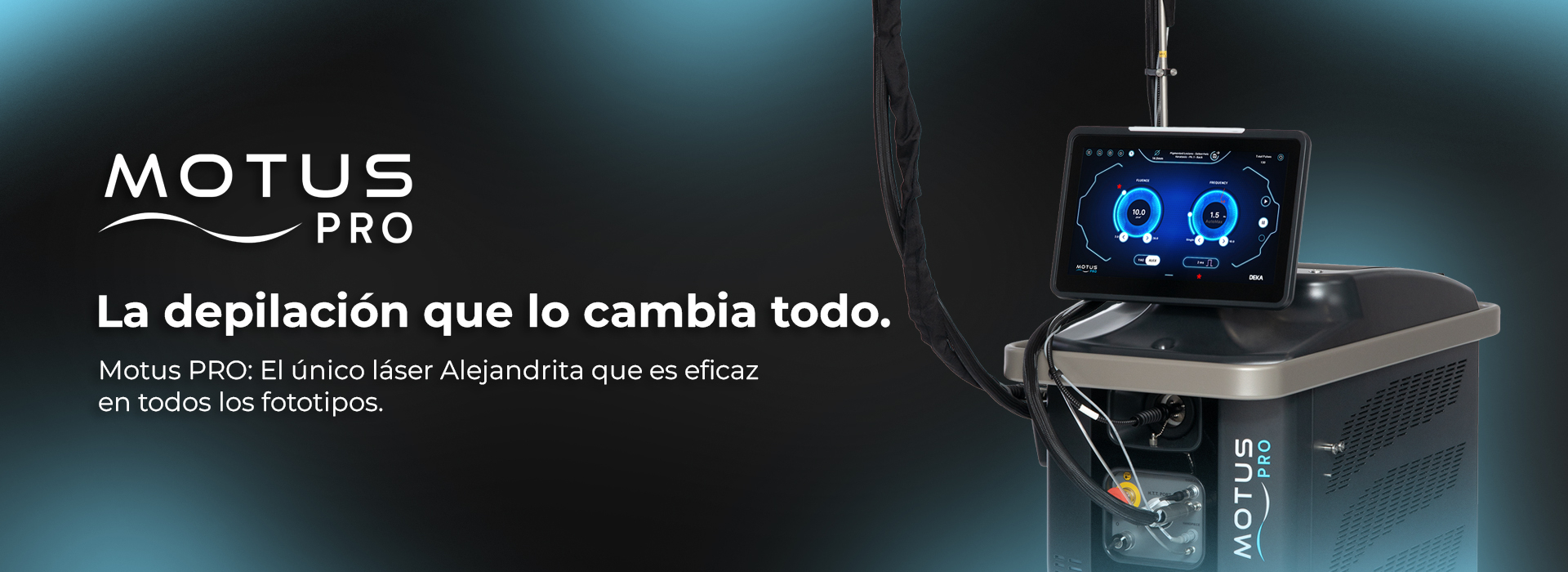 En el competitivo mundo de la medicina estética, ofrecer depilación láser indolora y efectiva para todos los tipos de piel es la clave para atraer a una clientela más amplia. El Motus PRO de DEKA es una plataforma de alta gama que combina el poder de dos láseres, el Alejandrita y el Nd:YAG, en un único sistema versátil. Gracias a su tecnología Moveo, la energía se transfiere de forma continua, haciendo que las sesiones sean más rápidas y eficaces.