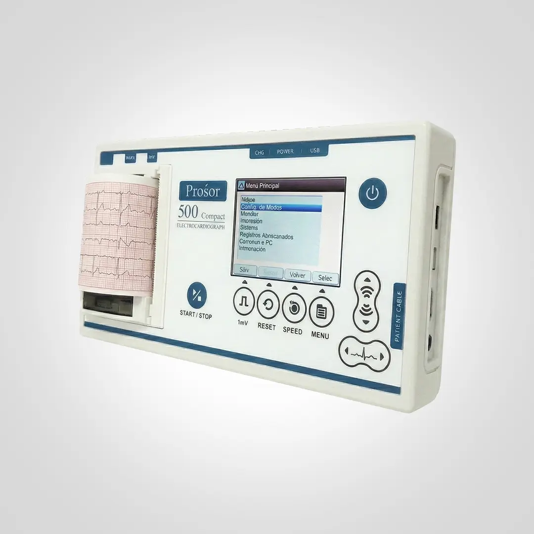 El Electrocardiógrafo Digital de 12 Derivaciones con Tecnología de Vanguardia en Formato Portátil. Registro simultáneo completo y modos de operación flexibles (Automático, Manual, Explorador). La precisión ECG que lleva consigo.